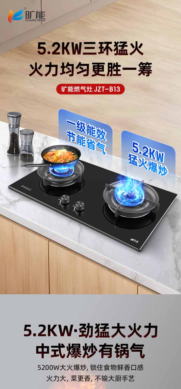 - 4.一键爆炒:瞬间火力到5.5KW,烹饪更高效,减少燃气消耗,可持续180S