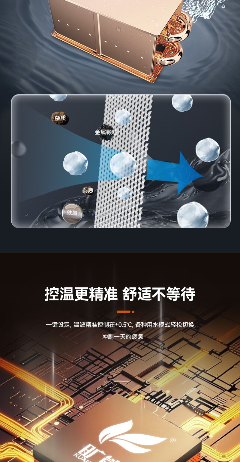 2.双宽频精准恒温系统,各种用水模式轻松转换
