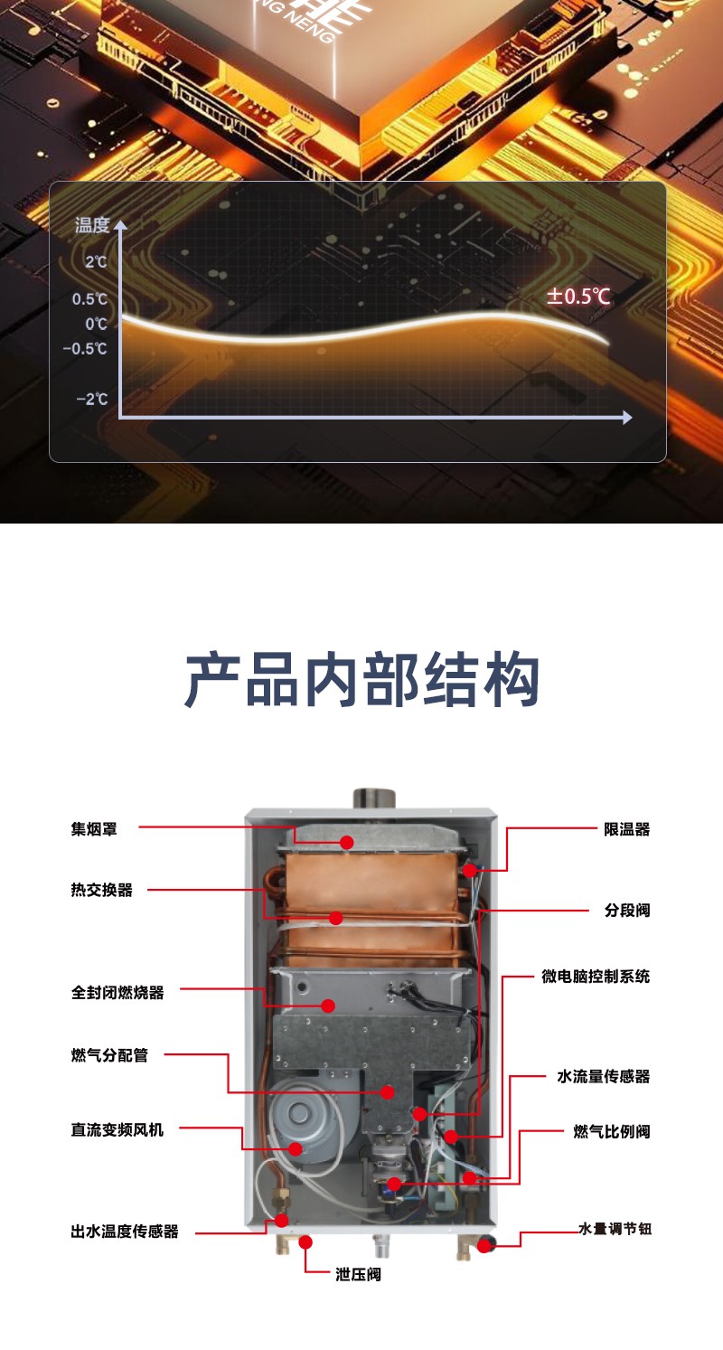 - 1.双温度传感器,超静音,密闭燃烧室