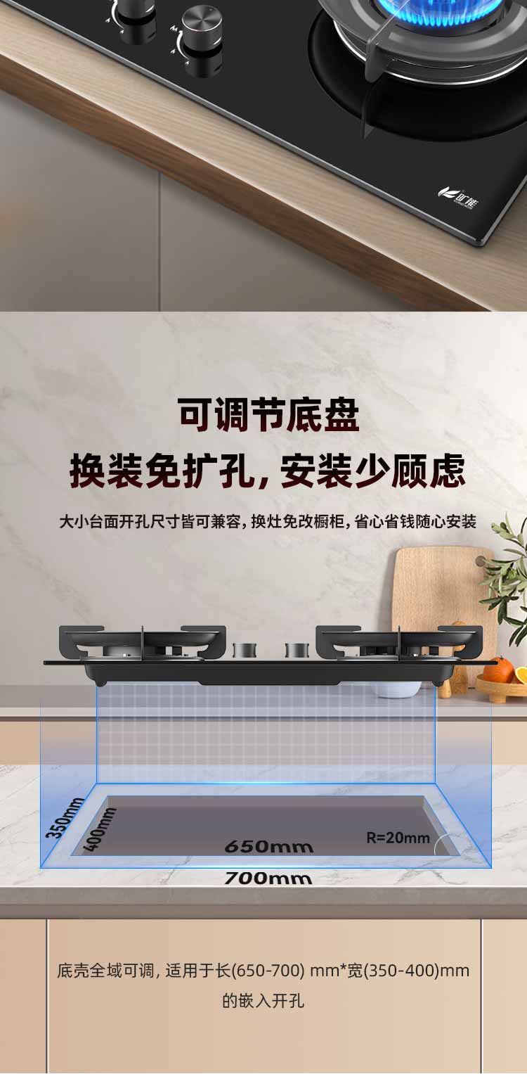 4.贴心可调节底盘,换灶免改孔 百搭各种台面