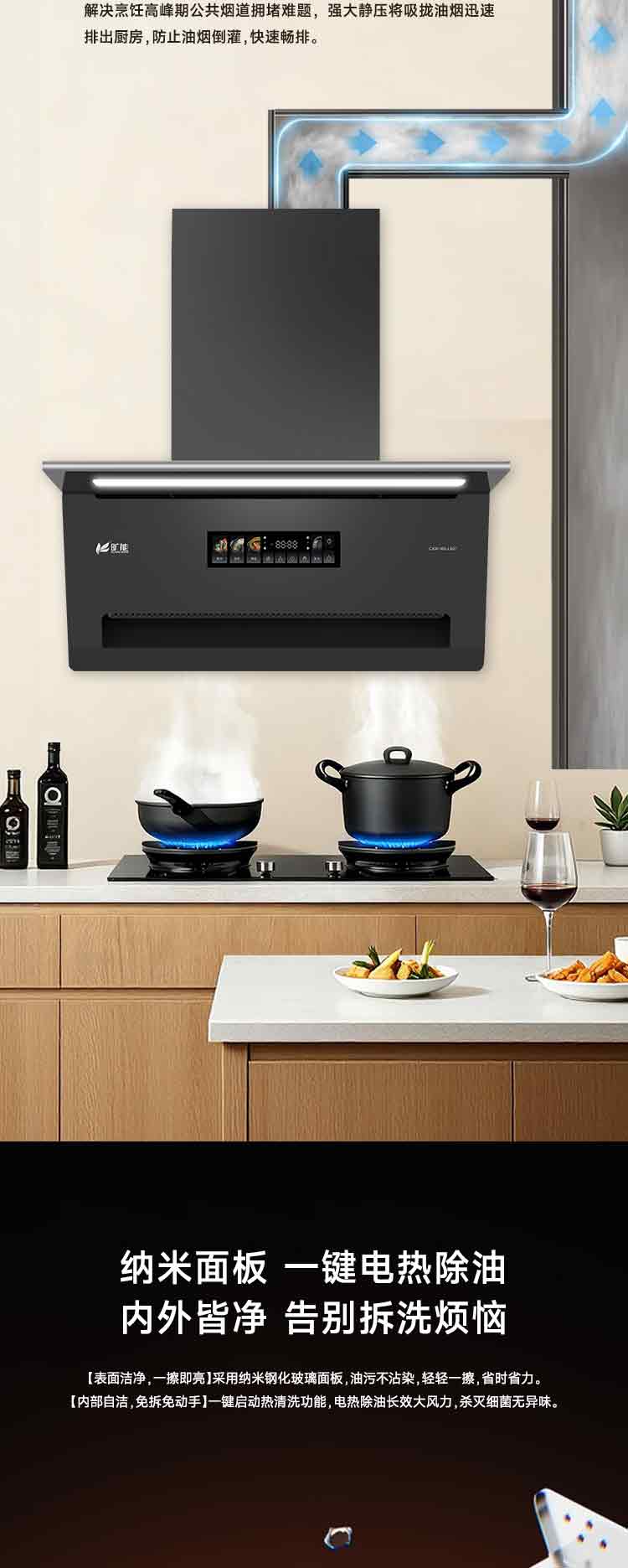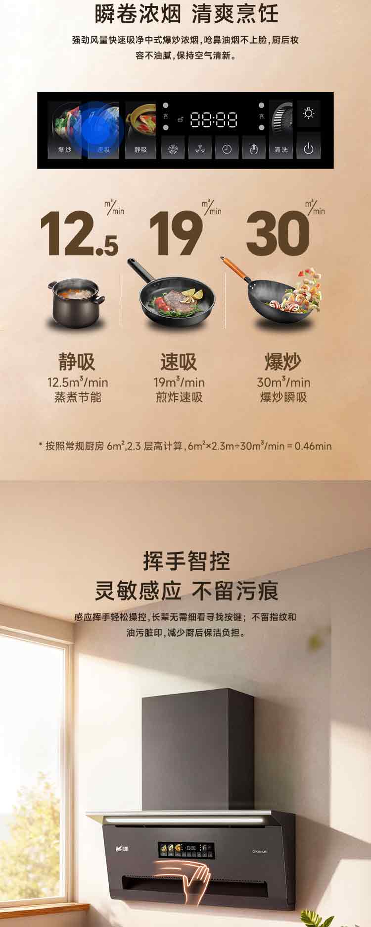 2.爆炒25㎥/min风量,瞬间吸烟,清爽烹厨