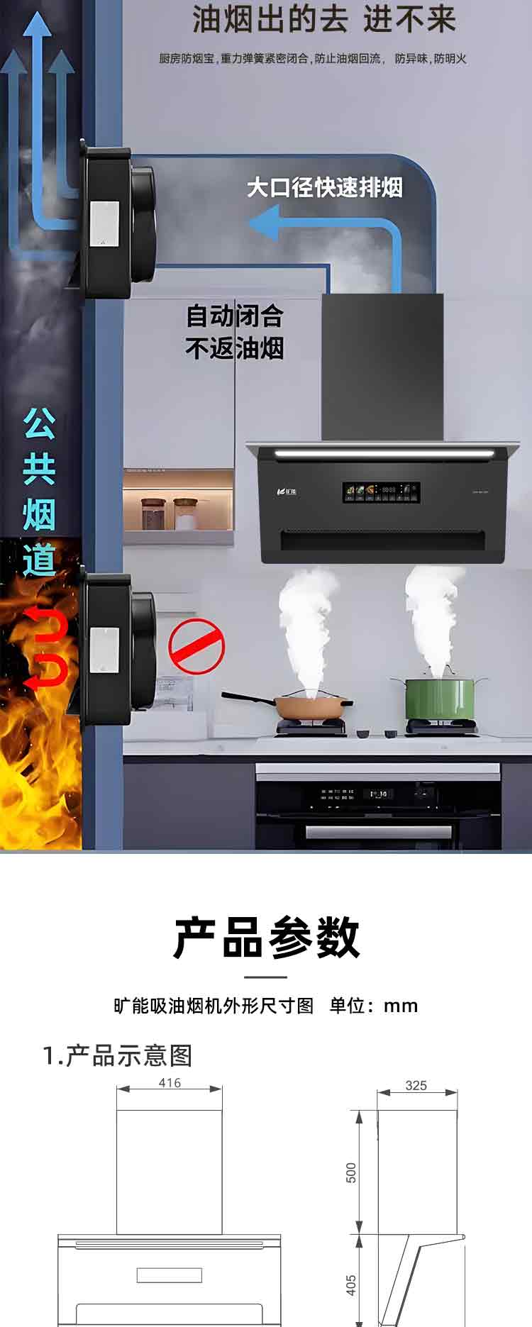 - 1.智能体感开关,时尚新颖,挥手智控,延时关机,操作方便,彻底清除厨房废气余烟
