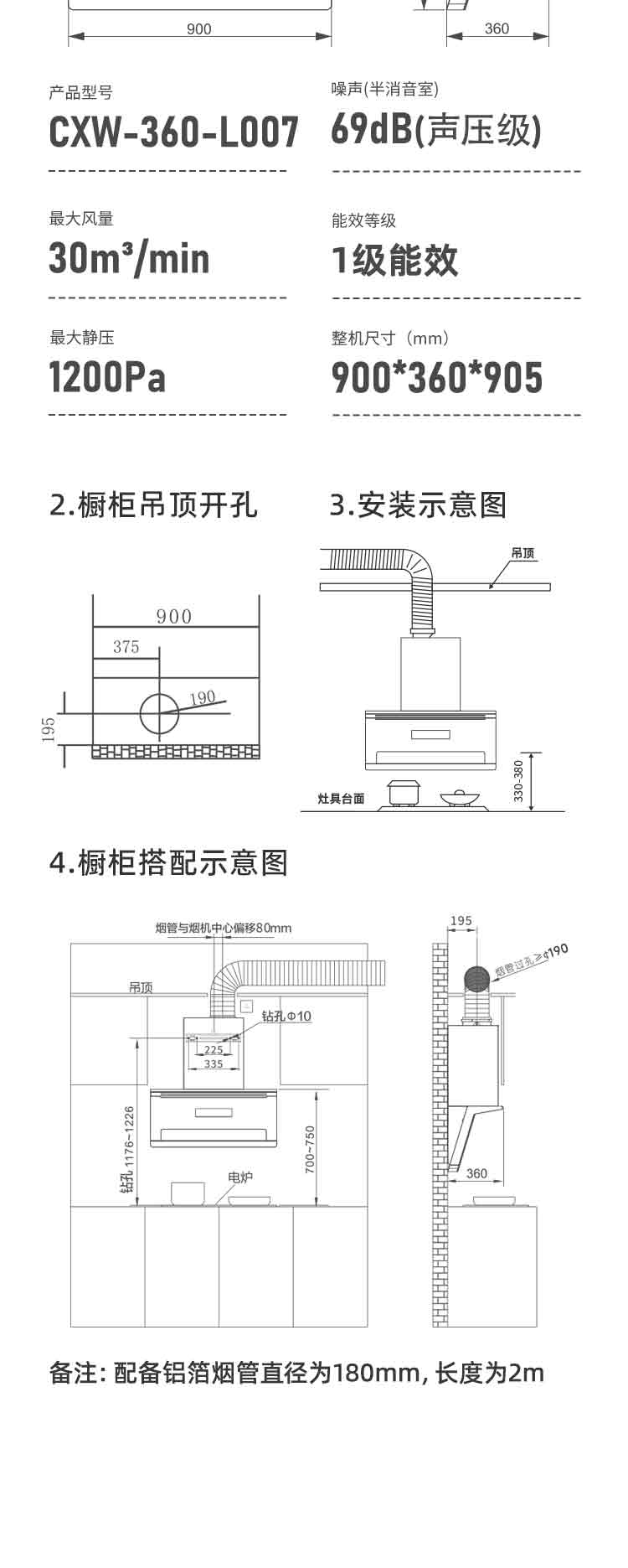 3.1200Pa大静压,强劲速排,洁净厨房